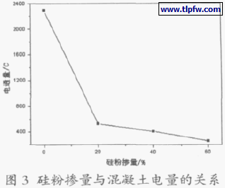 ⑶硅灰:单掺硅灰,掺量分别为5%、10%和15%的混凝土6 小时电通量的试验结果见图3。