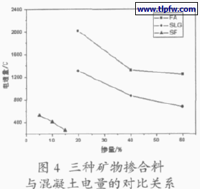 ⑷三种矿物掺合料对混凝土的氯离子渗透性能的改善效果对比。