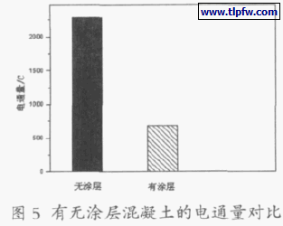 表层刷涂聚合物水泥防水涂料对混凝土电通量影响的试验结果见图5。