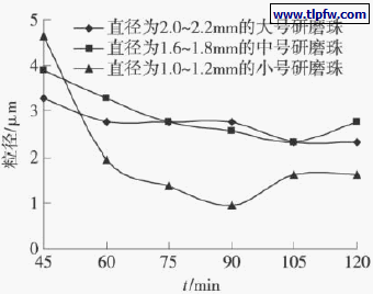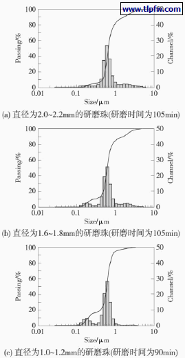 综上所述, 采用1: 1的中小混合珠研磨体系的研磨效果也能够达到单纯采用小号珠研磨体系的研磨效果, 但所需的时间较长。