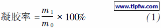 聚合反应结束后, 用100目尼龙网过滤乳液, 将所得凝胶用自来水反复洗涤后, 倒入洁净的表面皿中, 于120 ºc 烘至质量恒定, 然后置于干燥器中冷却至室温,称量, 按式( 1)计算凝胶率: