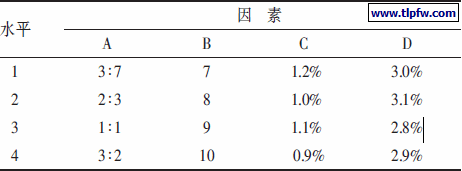 表1 复合乳液配制因素水平表