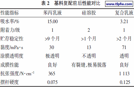 3.2.2 苯丙乳液和复合乳液所配涂料的性能对比