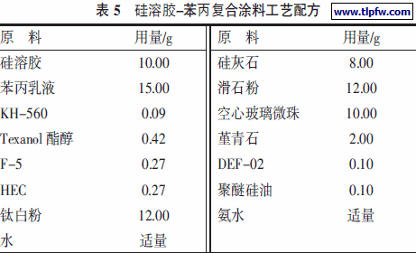 硅溶胶-苯丙复合涂料工艺配方见表5。