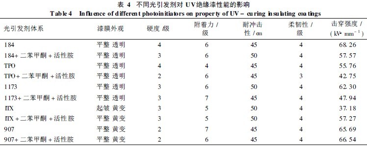 2 2 不同光引发剂体系对UV绝缘漆性能的影响