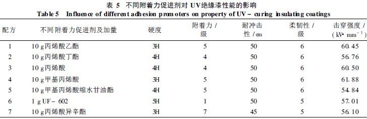 2. 3. 1 添加不同附着力促进剂对UV 绝缘漆性能的影响