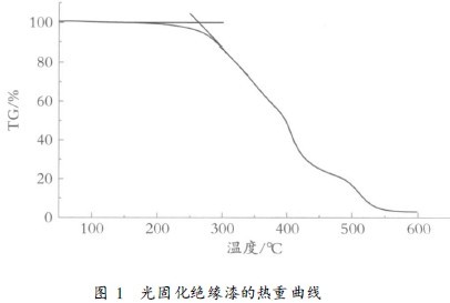 图1为光固化绝缘漆的热重曲线。