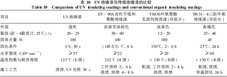 表10为UV绝缘漆与传统漆性能比较。