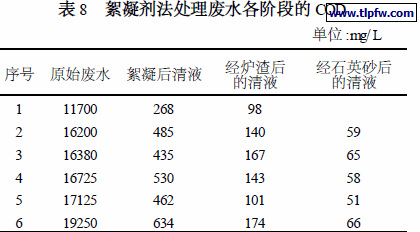 我们还对絮凝剂法处理混合废水的可靠性进行了多次试验,情况如表8 所示。