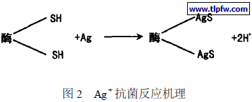 Ag + 也能破坏微生物电子传输系统、呼吸系统及物质传送系统。因为Ag + 具有较高的氧化还原电位( – 0. 798~ + 0. 798 V ,25 ℃) ,反应活性很大,通过反应达到稳定的结构状态。