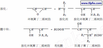 聚丁二烯阴极电泳涂料成膜树脂的制备机理如下[2 ] :