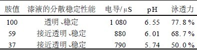 表2  树脂胺值对漆液性能的影响因素