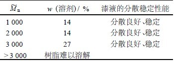表1  树脂数均相对分子质量对漆液性能的影响