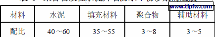 根据对聚合物改性水泥性能的研究所取得的成果,在反复试验优化的基础上,确定的聚合物改性水泥外墙防水干粉砂浆的组成见表1。