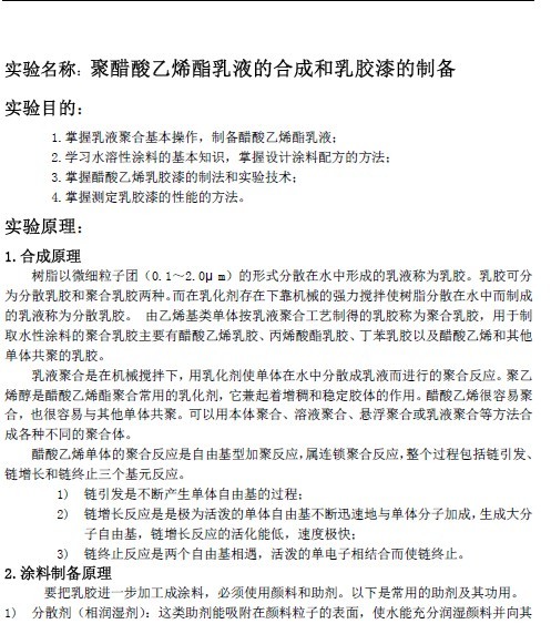 实验名称:聚醋酸乙烯酯乳液的合成和乳胶漆的制备