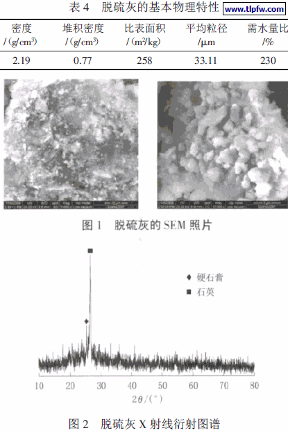 广东清远市某燃煤电厂脱硫灰的基本物理特性见表4,