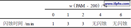 表5 PAM – 200加入量对漆膜抗闪蚀能力的影响