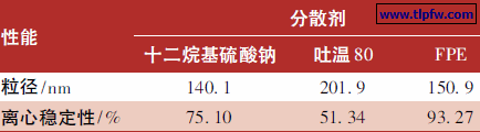 表1 分散剂结构与粒径及离心稳定性的关系