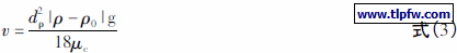 式( 3) 中v 是颗粒沉降速率; dρ是颗粒粒径; ρ 和ρ0分别是水和分散液的密度; μc是分散体的黏度。
