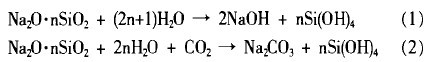 水玻璃的成膜主体是胶体二氧化硅。钠水玻璃在水溶液中水解成硅酸或与空气中二氧化碳发生作用,形成硅酸并逐渐干燥而固化。其固化成膜机理的反应式如下: