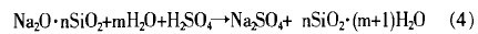 由于Na一0键与si一0键对H+不稳定,引入无机酸可提高钠水玻璃的模数,增大一si一0一Si一链的网状结构;同时加入有机助剂,用憎水基取代一部分水玻璃两端的钠离子,可促进水玻璃干燥成膜后耐水性的提高。以硫酸为例,其固化反应如下: