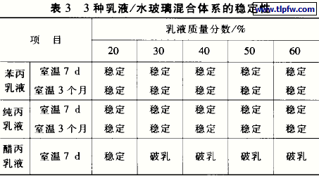 3.3 水玻璃和乳液的复配稳定性