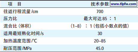 近年来,重防腐涂料配套中,出现了大量的无溶剂涂料,如聚脲等,在25℃下,其混合使用期均短于0.5 h,在大生产上很难控制,所以必须使用双组分的无气喷涂机。双组分涂料的A、B 组分分别装有各自的抽料泵,从料桶输送至主机进行计量、加压、升温,然后输送至喷枪,在喷枪口A、B 组分混合后喷出。Graco、WIWA 具有多种规格的双组分无气喷漆机。表2 为WIWA333 型双组分无气喷漆机的技术数据。该喷漆机适应低、中、高黏度的各类涂料;适用于富锌底漆的喷涂;甚至适用于三组分混合涂料。