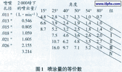 从上式可见,喷嘴当量孔径与流量的关系最密切。喷嘴孔径大,涂料喷出量大,涂膜就厚。