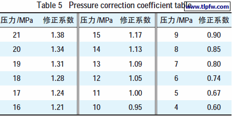 表5 压力修正系数表
