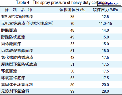 (2) 重防腐涂料的固体分高,要求有较高的喷漆压力;