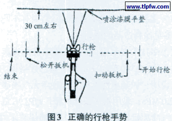 手持喷枪使喷束自始至终垂直于表面(见图3)。