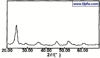 由于纳米T iO2 微粒尺寸小, 比表面积大, 表面原子数多, 表面能高, 表面原子严重配位不足, 因此具有很强的表面活性与超强吸附能力, 纳米材料的众多优良特性即因此而来。锐钛矿型TiO2 的X 衍射分析如图1 所示。