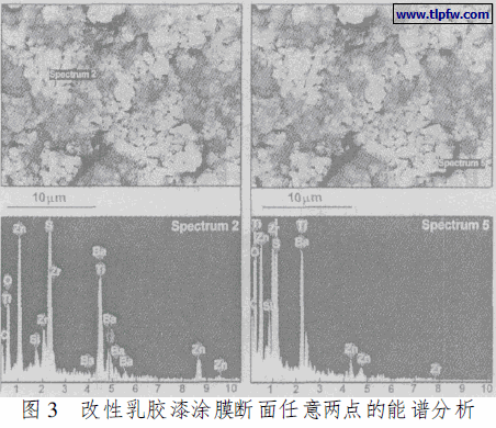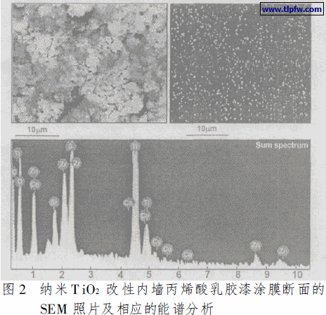 3. 1 纳米TiO2 改性内墙乳胶漆的形貌及能谱分析