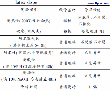 纳米改性乳胶漆的其它性能指标如表1 所示。