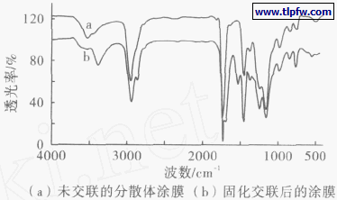 图1 丙烯酸树脂分散体涂膜及固化涂膜的红外光谱图