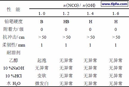215 NCO —与OH —物质的量比对固化膜性能的影响