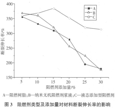 2.2.2 阻燃剂类型及添加量对断裂伸长率的影响