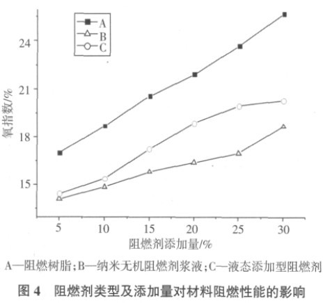 2.2.3 阻燃剂类型及添加量对阻燃性能(氧指数)的影响