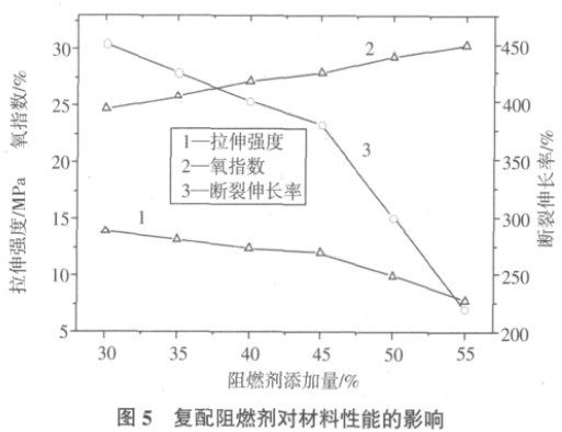2.2.4 复配阻燃剂及添加量对阻燃性能(氧指数)的影响