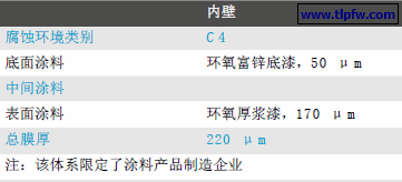 双组分复合厚膜环氧中间涂料,90~140 μm。