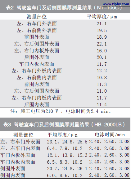 (2)驾驶室内、外表面膜厚的测定