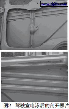 用离子切割机分割电泳后的驾驶室(见图2),然后测定不同部位的膜厚,结果见表2,HB-2000LB的膜厚测定结果见表3。