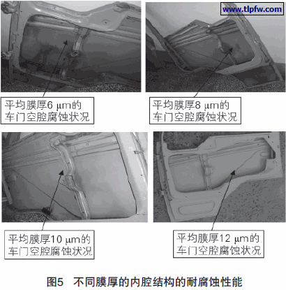 (4)驾驶室内腔结构不同厚度电泳漆膜的加速腐蚀试验