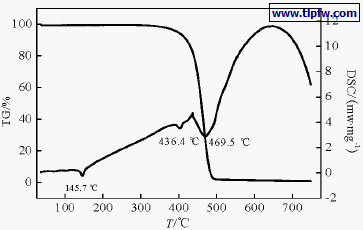 图2 漆基树脂的TG/DSC 图