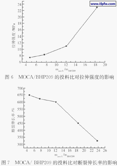 2. 3  扩链剂比例(MOCA/ BHP209) 对性能的影响