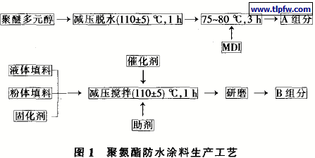 聚氨酯防水涂料简明的生产工艺流程见图1。