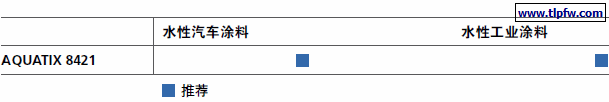 加入效应颜料浆后,在低剪切力搅拌下将 AQUATIX 8421 加入漆料中。不需要用水预稀释。由于该产品呈酸性,AQUATIX8421 会降低pH值,因此建议加入 AQUATIX 8421 前将涂料体系pH值调至 9.0 – 9.5。最后用旋转粘度计(如Brookfield粘度计)来调整粘度,不要使用流动粘度杯。
