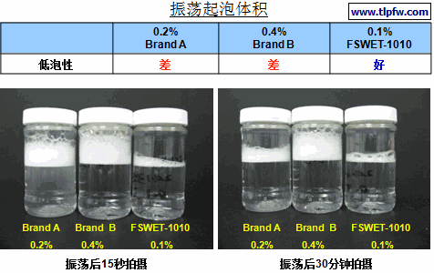 结论:添加Zonyl® FSWET-1010的配方发泡最低。