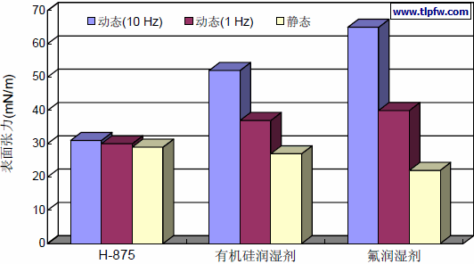 (2) Hydropalat® 875 也可用作各类单体乳液聚合的乳化剂,用Hydropalat® 875 稳定的聚合物分散体,性能优越,具有优异的润湿特性。如果要求分散体同时具备卓越的润湿性和优良的机械稳定性,推荐Hydropalat® 875 与高乙氧基化非离子表面活性剂如Disponil LS、TA 或NP 拼合使用。表面活性剂的加入会影响缔合型增稠剂的缔合,加入0.2%的Hydropalat® 875,有利于解决分水问题。