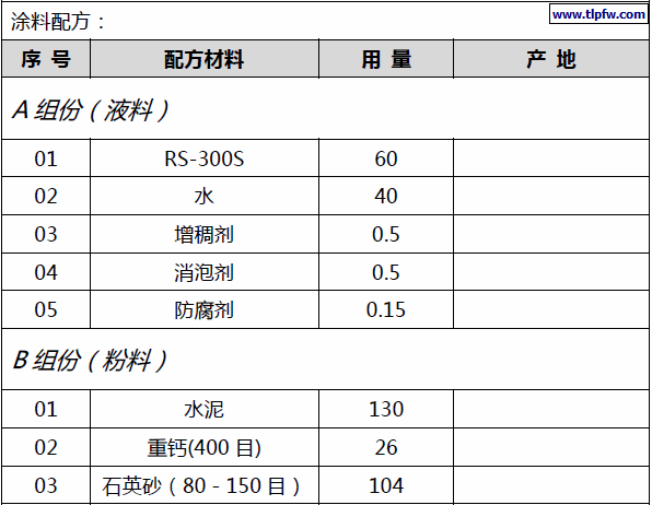 RS-300S 通用型防水涂料参考配方